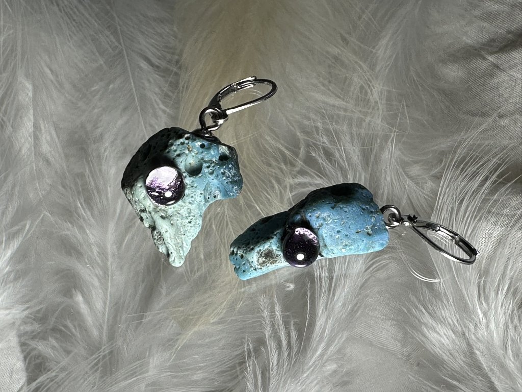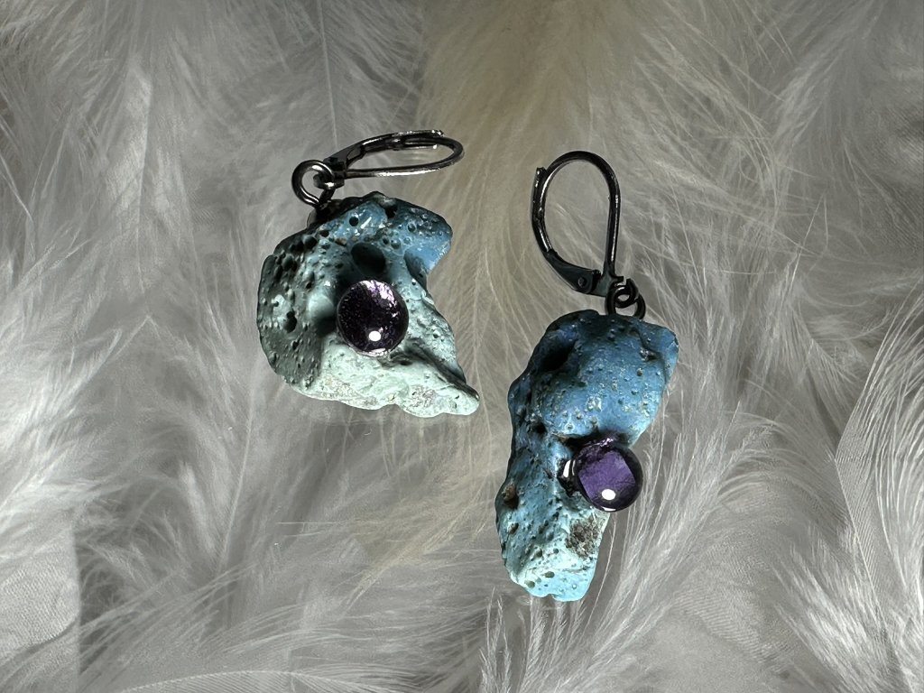 Tyto náušnice jsou unikátními nálezy, které hledám v řece Sázavě. Vše brousím a zpracovávám do jedinečných šperků, které jsou jedním jediným originálem. Dozdobuji kousky skla. Některé v sobě obsahuje stříbro a tím háže jemné a přesto nepřehlédnutelné odlesky.