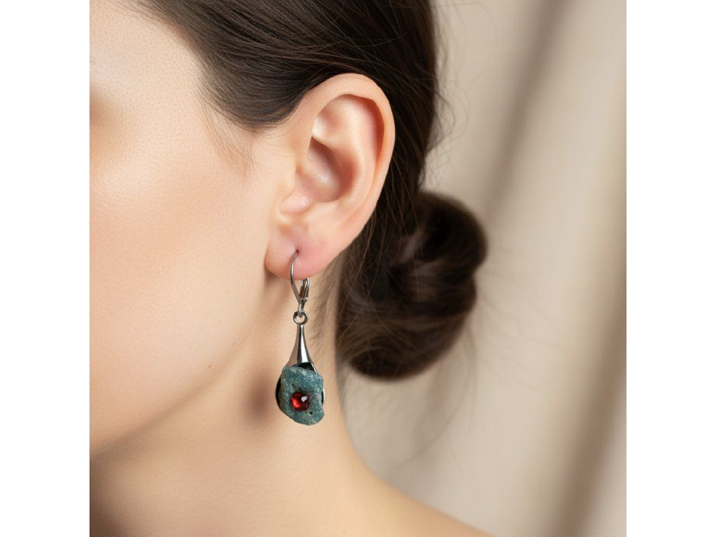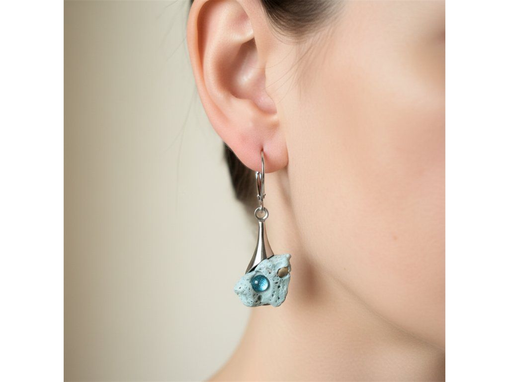 Tyto náušnice jsou unikátními nálezy, které hledám v řece Sázavě. Vše brousím a zpracovávám do jedinečných šperků, které jsou jedním jediným originálem. Dozdobuji kousky skla. Některé v sobě obsahuje stříbro a tím háže jemné a přesto nepřehlédnutelné odlesky.