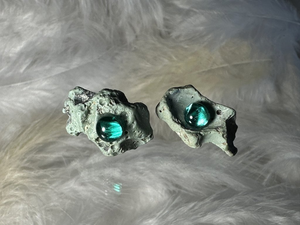 Tyto náušnice jsou unikátními nálezy, které hledám v řece Sázavě. Vše brousím a zpracovávám do jedinečných šperků, které jsou jedním jediným originálem. Dozdobuji kousky skla. Některé v sobě obsahuje stříbro a tím háže jemné a přesto nepřehlédnutelné odlesky.