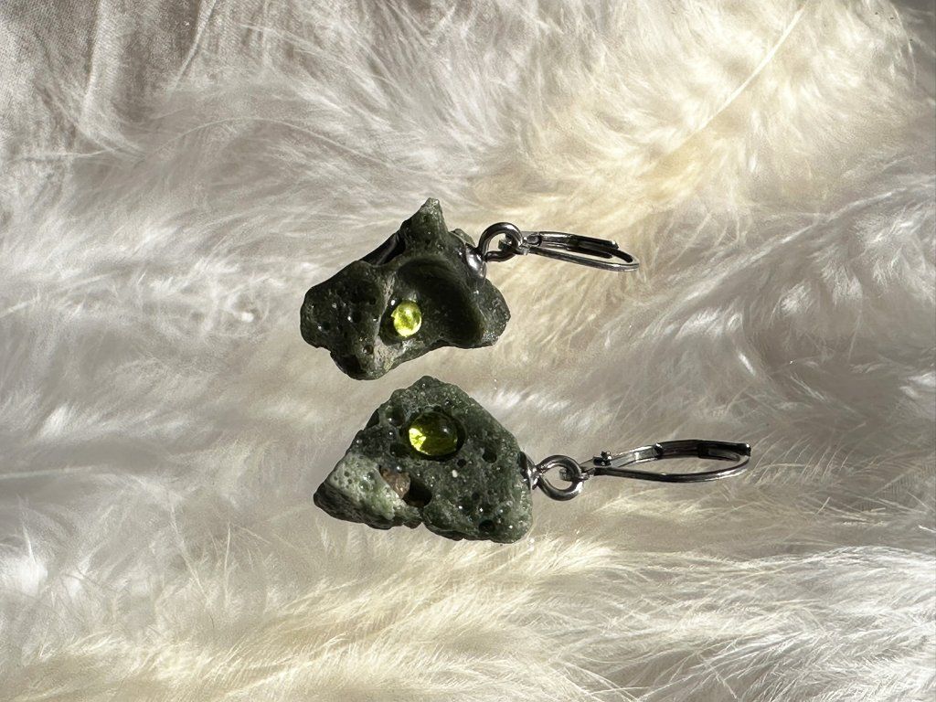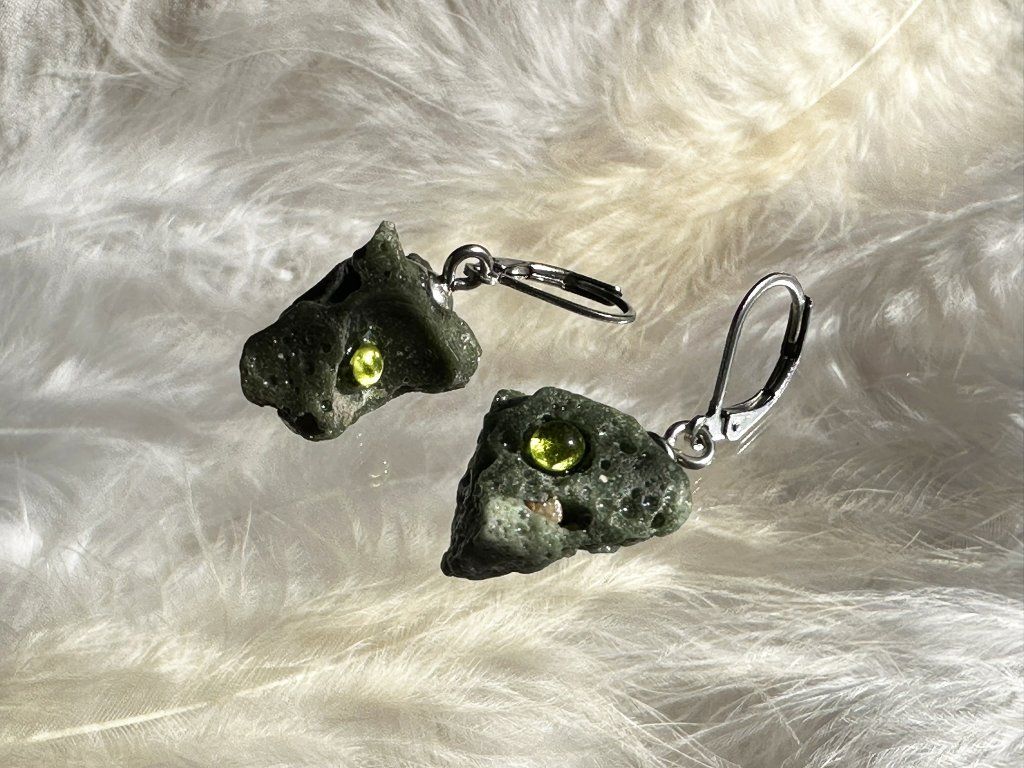 Tyto náušnice jsou unikátními nálezy, které hledám v řece Sázavě. Vše brousím a zpracovávám do jedinečných šperků, které jsou jedním jediným originálem. Dozdobuji kousky skla. Některé v sobě obsahuje stříbro a tím háže jemné a přesto nepřehlédnutelné odlesky.