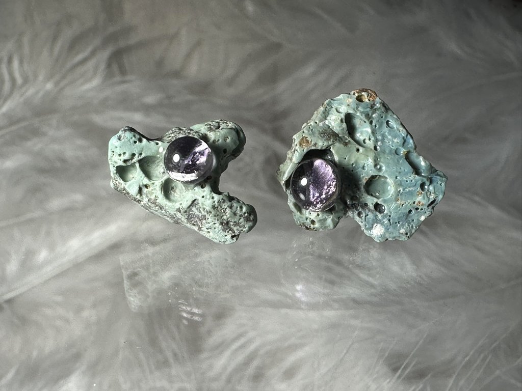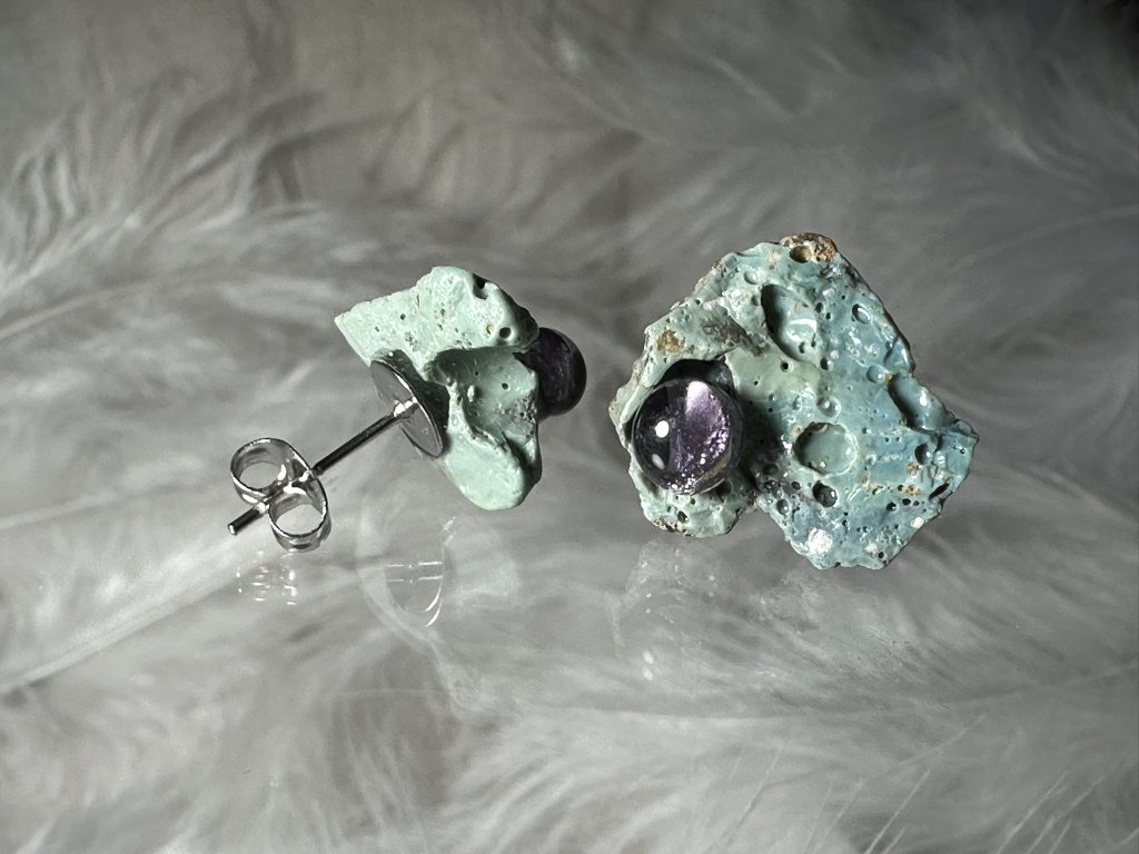 Tyto náušnice jsou unikátními nálezy, které hledám v řece Sázavě. Vše brousím a zpracovávám do jedinečných šperků, které jsou jedním jediným originálem. Dozdobuji kousky skla. Některé v sobě obsahuje stříbro a tím háže jemné a přesto nepřehlédnutelné odlesky.