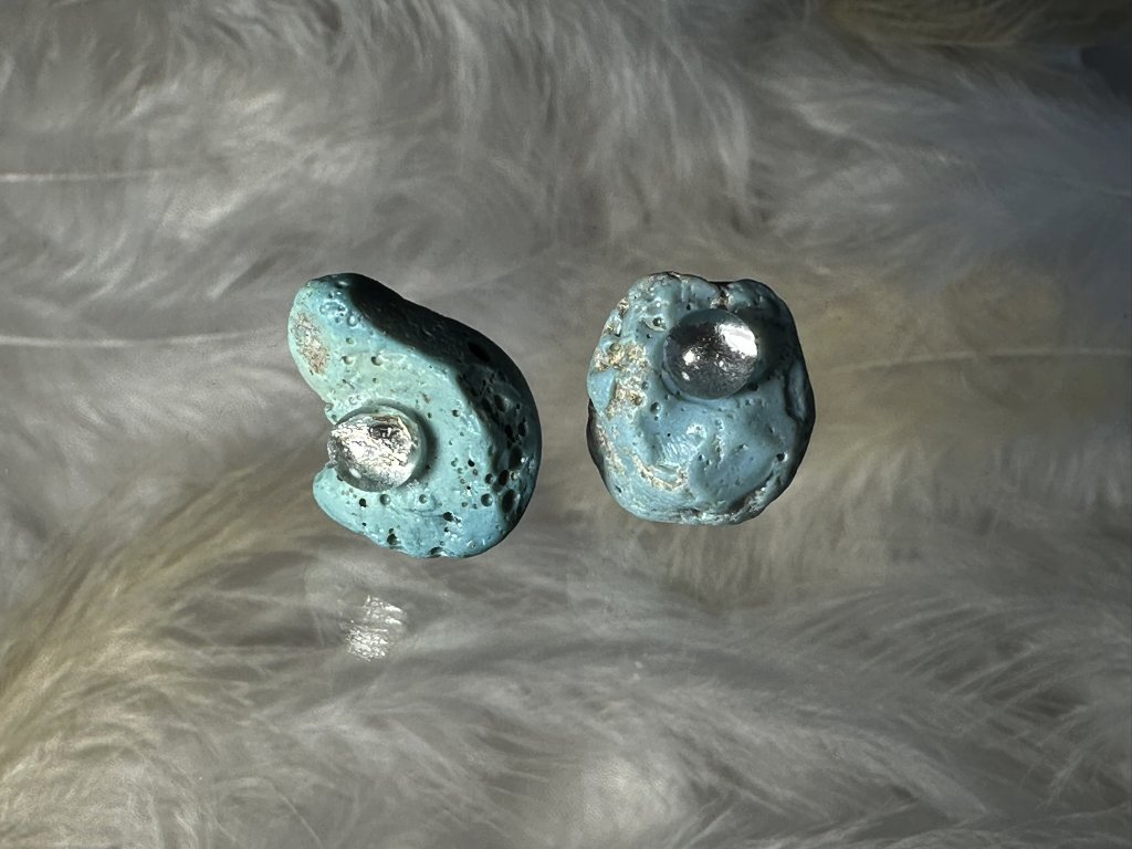 Náušnice z kolekce Sázavíny jsou unikátní kousky, které v sobě nesou kousky historie. Jde o ojedinělé nálezy v řece Sázavě, kde Sázavíny sbírám a dále je obrušuji, zpracovávám a doplňuji kousky skla obsahující v sobě často stříbro.