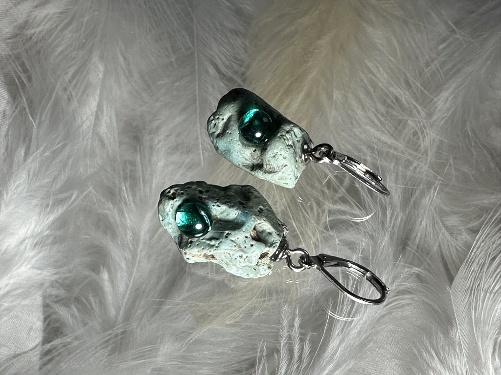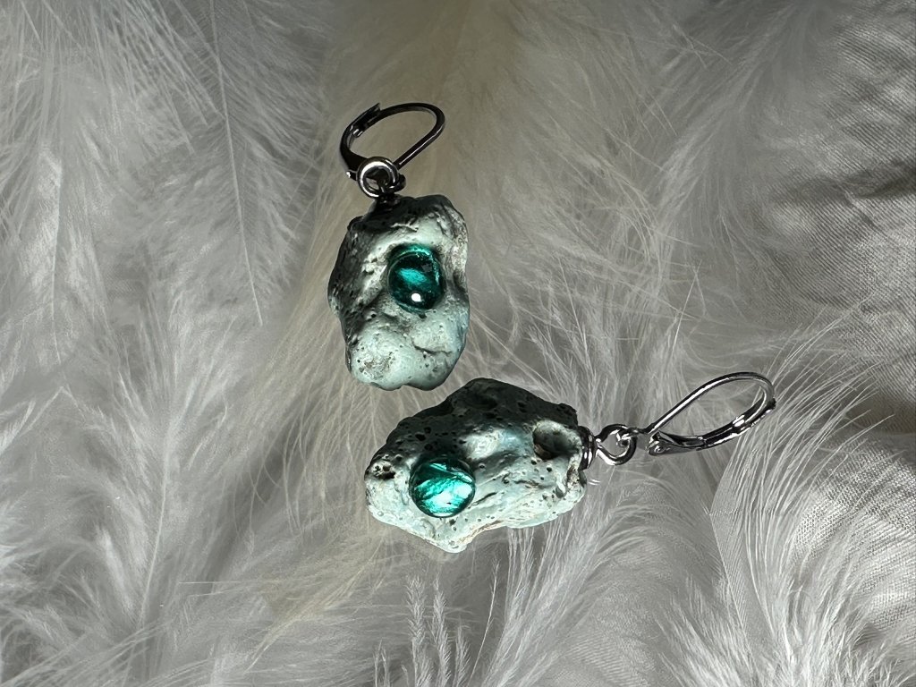 Tyto náušnice jsou unikátními nálezy, které hledám v řece Sázavě. Vše brousím a zpracovávám do jedinečných šperků, které jsou jedním jediným originálem. Dozdobuji kousky skla. Některé v sobě obsahuje stříbro a tím háže jemné a přesto nepřehlédnutelné odlesky.