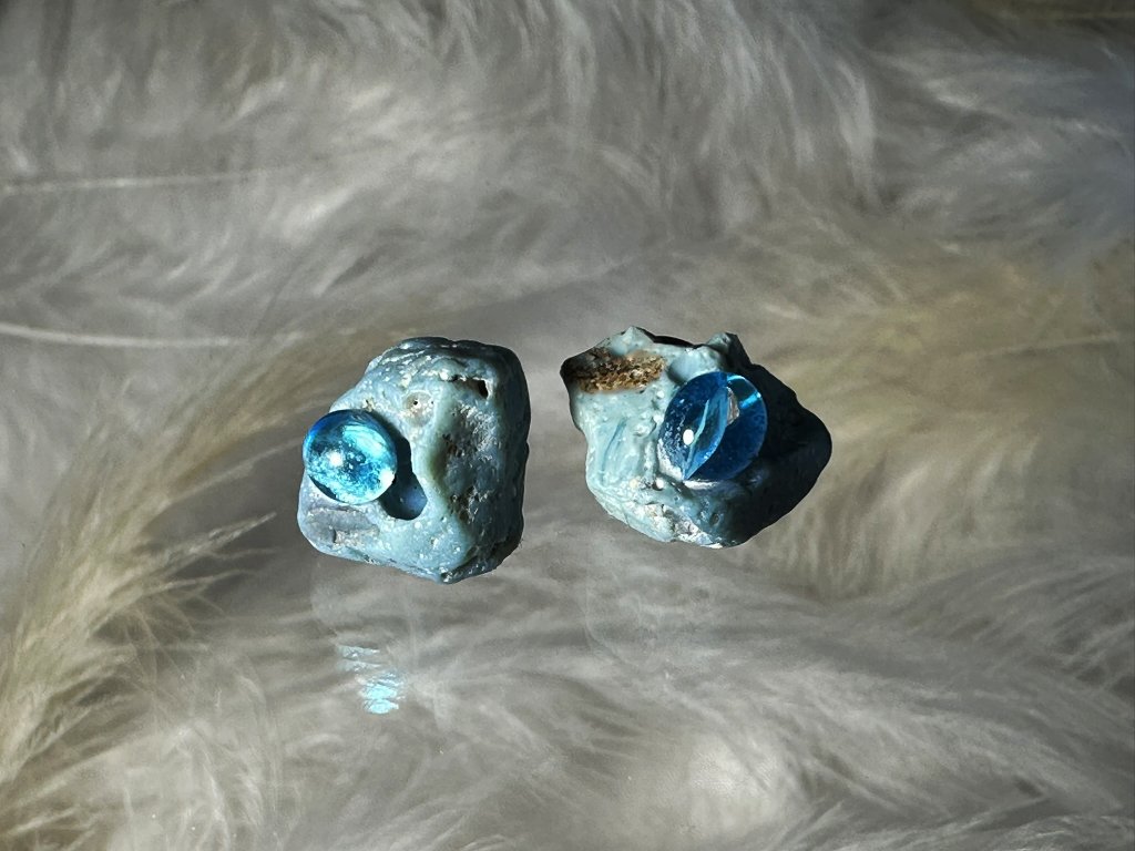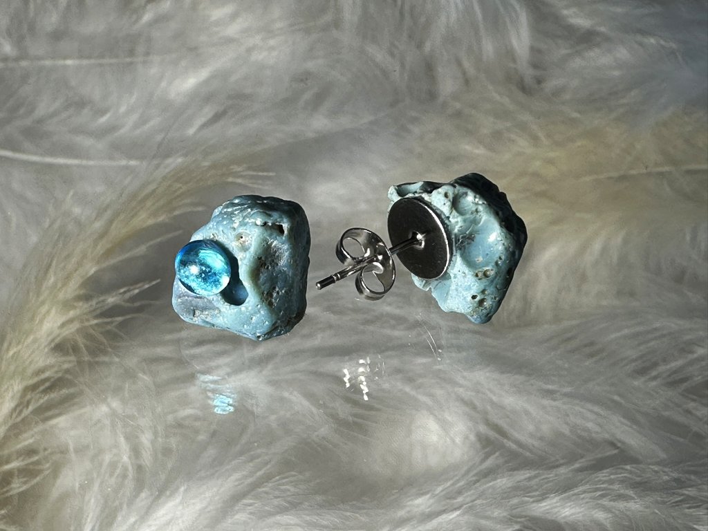 Tyto náušnice jsou unikátními nálezy, které hledám v řece Sázavě. Vše brousím a zpracovávám do jedinečných šperků, které jsou jedním jediným originálem. Dozdobuji kousky skla. Některé v sobě obsahuje stříbro a tím háže jemné a přesto nepřehlédnutelné odlesky.