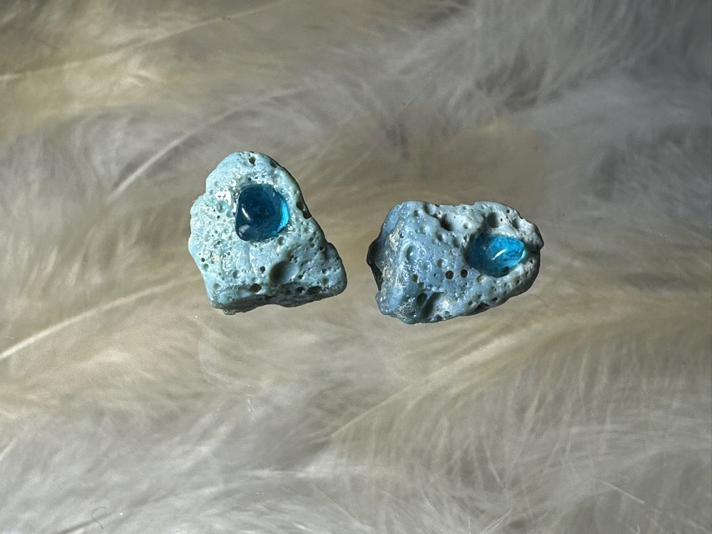 Náušnice z kolekce Sázavíny jsou unikátní kousky, které v sobě nesou kousky historie. Jde o ojedinělé nálezy v řece Sázavě, kde Sázavíny sbírám a dále je obrušuji, zpracovávám a doplňuji kousky skla obsahující v sobě často stříbro.