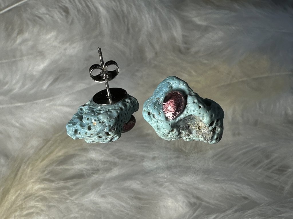 Tyto náušnice jsou unikátními nálezy, které hledám v řece Sázavě. Vše brousím a zpracovávám do jedinečných šperků, které jsou jedním jediným originálem. Dozdobuji kousky skla. Některé v sobě obsahuje stříbro a tím háže jemné a přesto nepřehlédnutelné odlesky.
