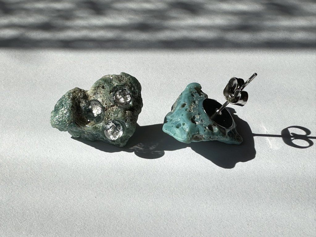 Tyto náušnice jsou unikátními nálezy, které hledám v řece Sázavě. Vše brousím a zpracovávám do jedinečných šperků, které jsou jedním jediným originálem. Dozdobuji kousky skla.