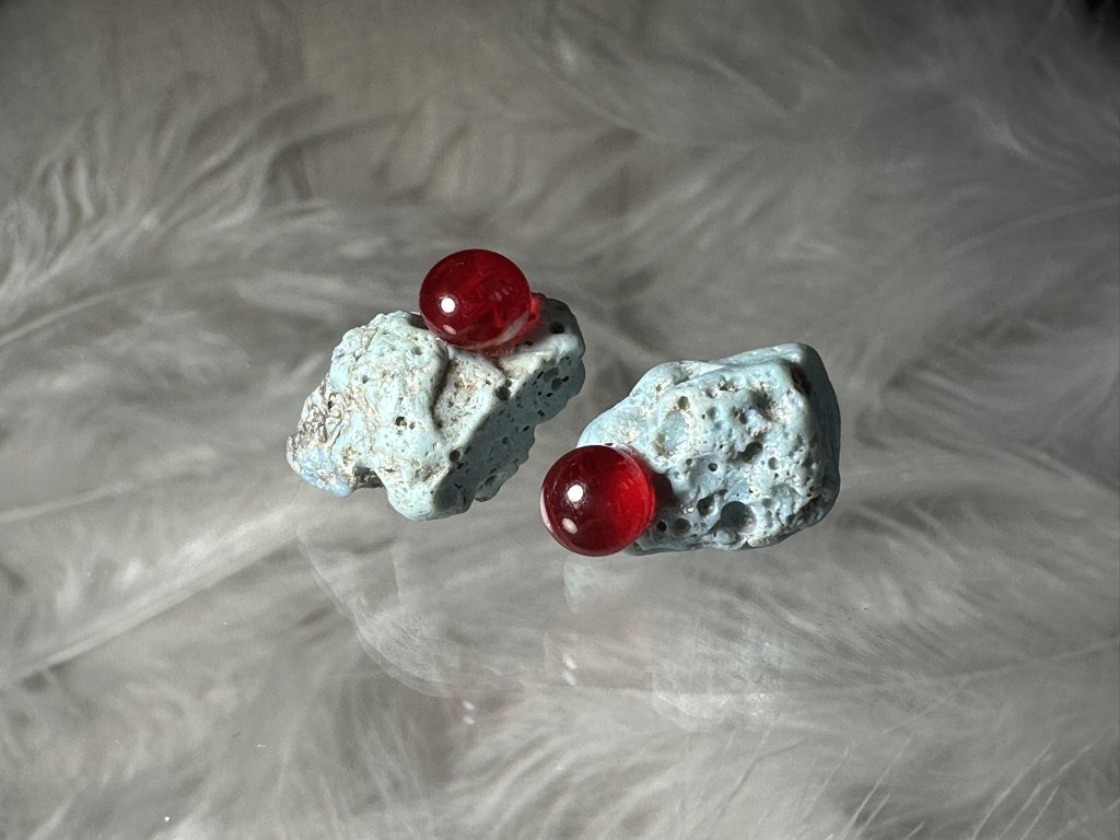 Tyto náušnice jsou unikátními nálezy, které hledám v řece Sázavě. Vše brousím a zpracovávám do jedinečných šperků, které jsou jedním jediným originálem. Dozdobuji kousky skla. Některé v sobě obsahuje stříbro a tím háže jemné a přesto nepřehlédnutelné odlesky.