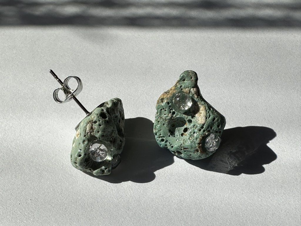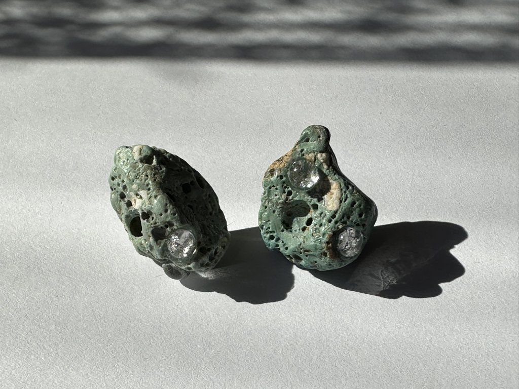 Tyto náušnice jsou unikátními nálezy, které hledám v řece Sázavě. Vše brousím a zpracovávám do jedinečných šperků, které jsou jedním jediným originálem. Dozdobuji kousky skla.