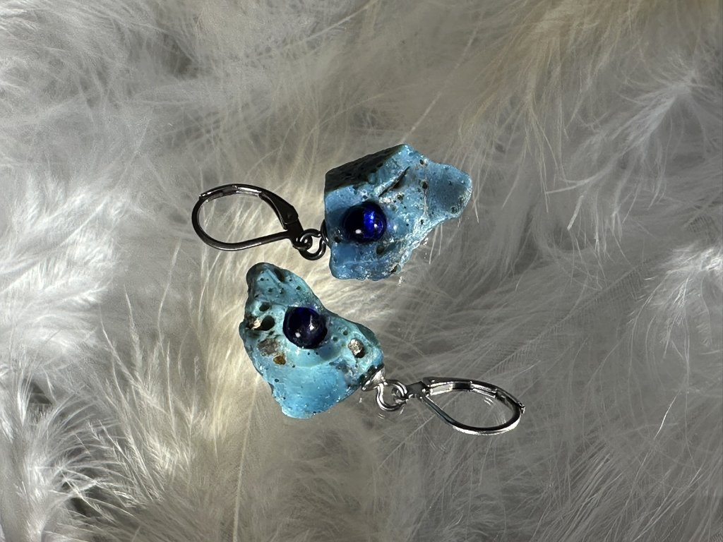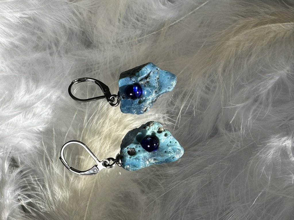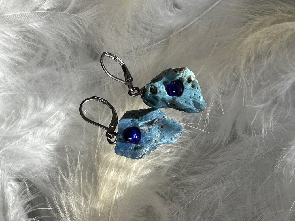 Tyto náušnice jsou unikátními nálezy, které hledám v řece Sázavě. Vše brousím a zpracovávám do jedinečných šperků, které jsou jedním jediným originálem. Dozdobuji kousky skla. Některé v sobě obsahuje stříbro a tím háže jemné a přesto nepřehlédnutelné odlesky.