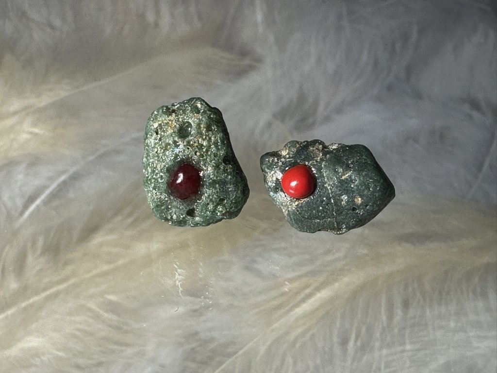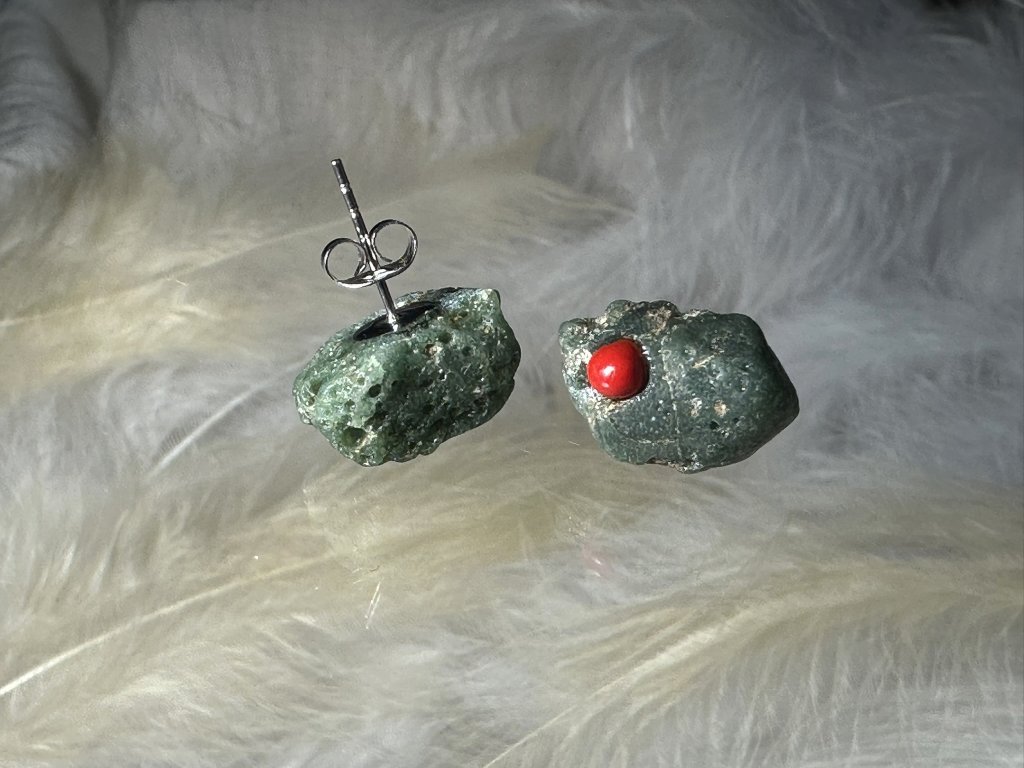 Tyto náušnice jsou unikátními nálezy, které hledám v řece Sázavě. Vše brousím a zpracovávám do jedinečných šperků, které jsou jedním jediným originálem. Dozdobuji kousky skla.