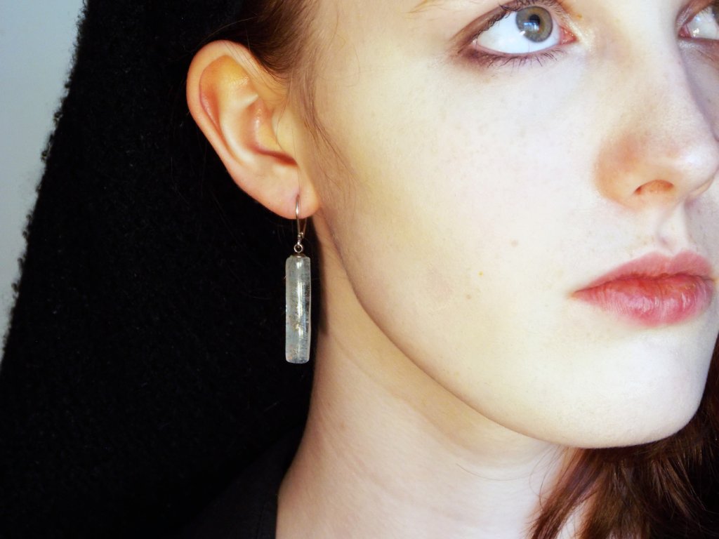 Elegantní, autorské náušnice se svým tajemným, skleněným mikrosvětem v barvě čiré. Náušnice mají tubičkový, mírně nepravidelný tvar a na světle se stávají jemným, zářícím šperkem připomínající kousky ledu. Háčky jsou z antialergenní nerez ocele a jsou uzavíratelné. Vhodné na každodenní nošení i zvláštní událost. Náušnice jsou lehké a příjemně se nosí.