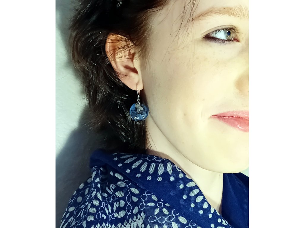 Elegantní, autorské náušnice ve tvaru kroužků, které obsahují drobnou kapičku dichroického skla s jemným odleskem. Krásně se třpytí ve světle a jsou jemným šperkem na každodenní nošení i večerní událost. Háčky jsou uzavíratelné a jsou z antialergenní nerez ocele.