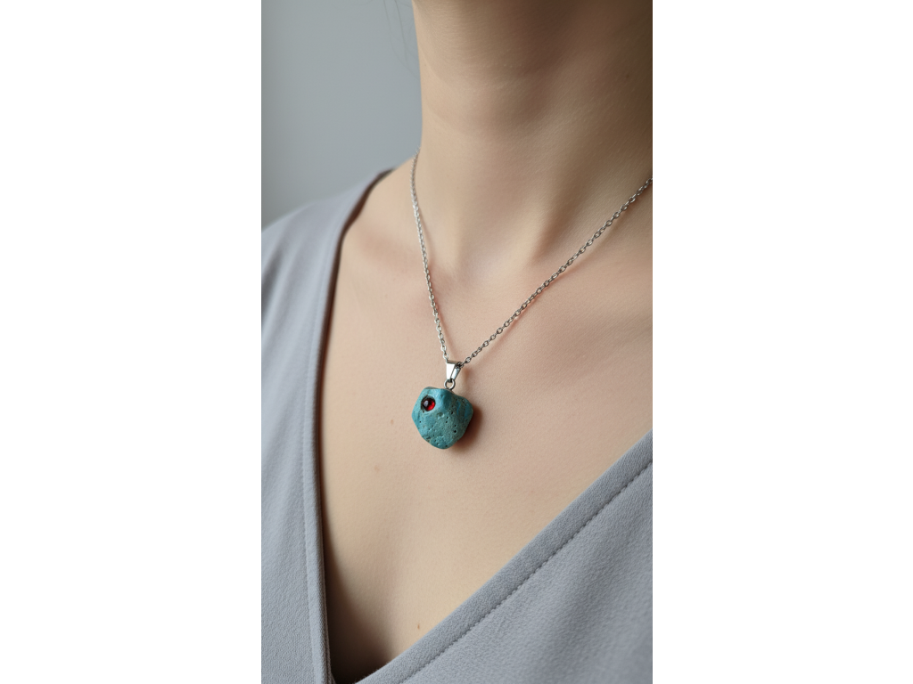 Fotografie na modelce je ilustrativní, aby jste viděli, jak tento typ přívěsku vypadá při nošení.