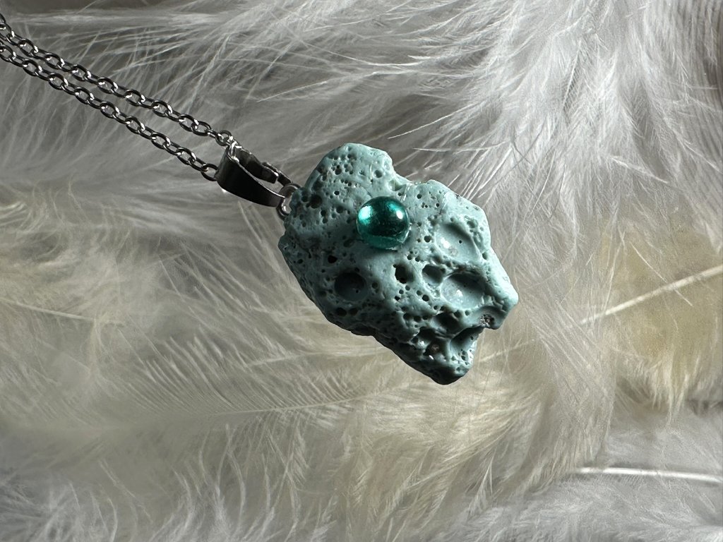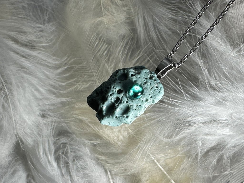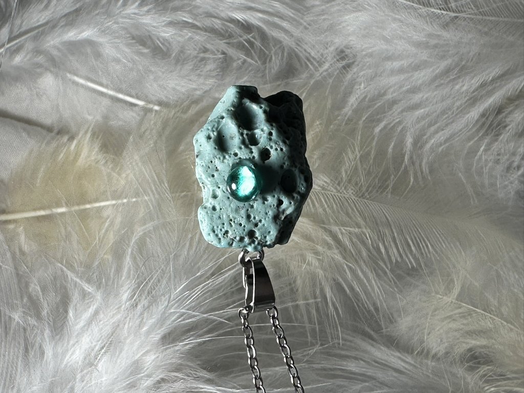 Tyto přívěsky jsou unikátními nálezy, které hledám v řece Sázavě. Vše brousím a zpracovávám do jedinečných šperků, které jsou jedním jediným originálem. Dozdobuji kousky skla, které v sobě obsahuje stříbro a tím háže jemné a přesto nepřehlédnutelné odlesky.