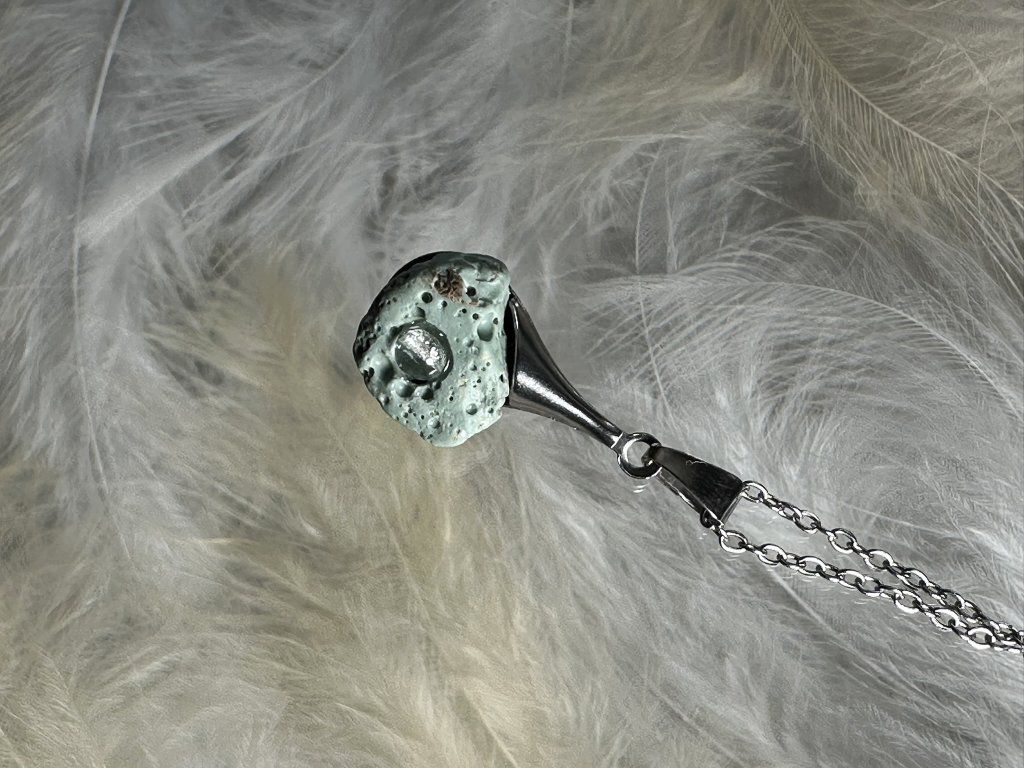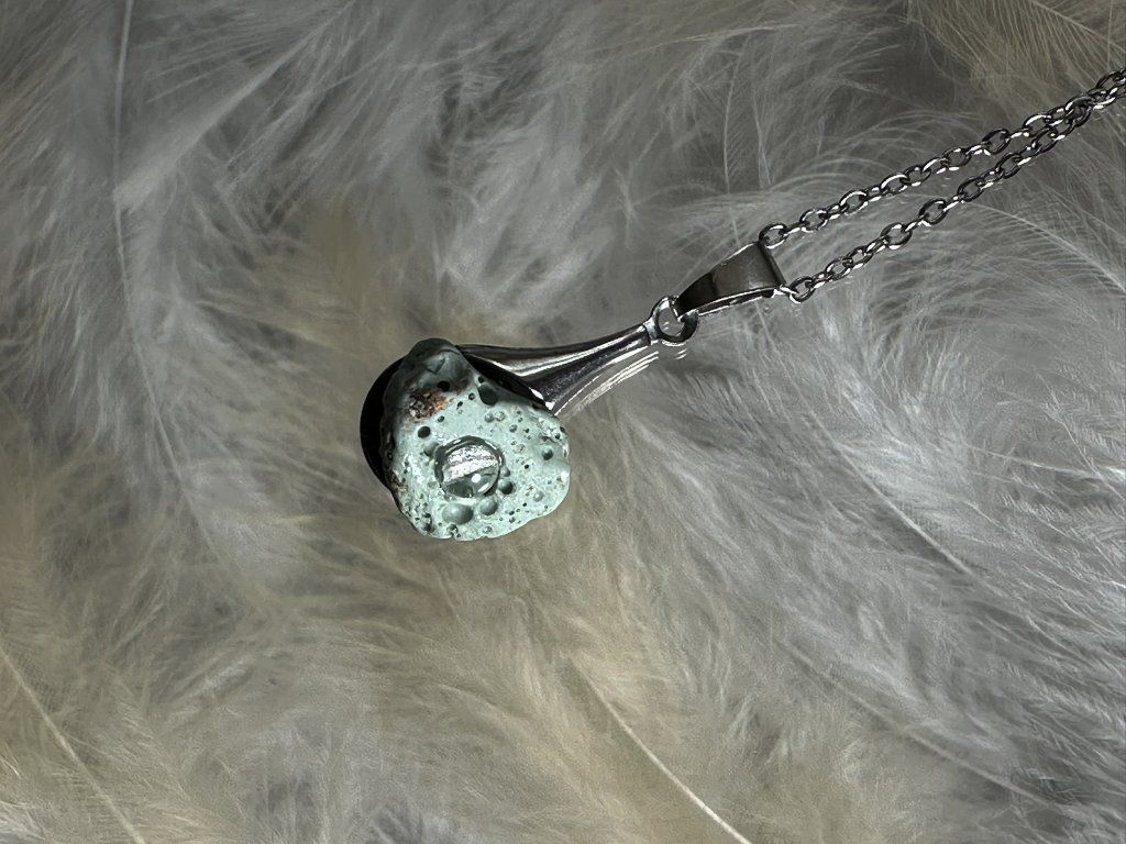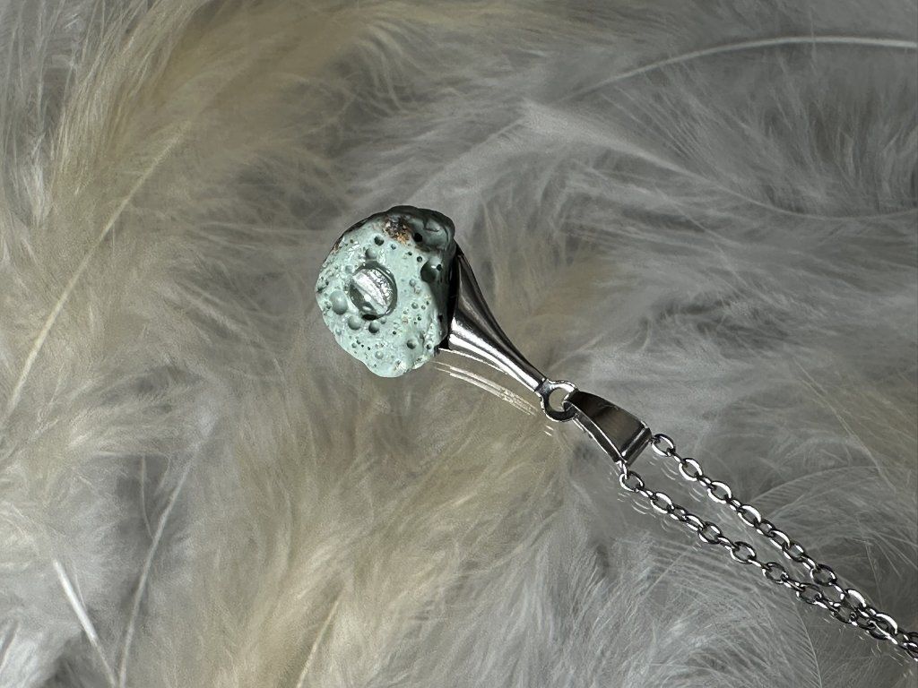 Tyto přívěsky jsou unikátními nálezy, které hledám v řece Sázavě. Vše brousím a zpracovávám do jedinečných šperků, které jsou jedním jediným originálem. Dozdobuji kousky skla, které v sobě obsahuje stříbro a tím háže jemné a přesto nepřehlédnutelné odlesky.