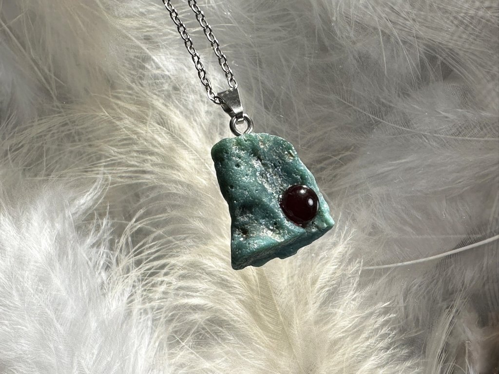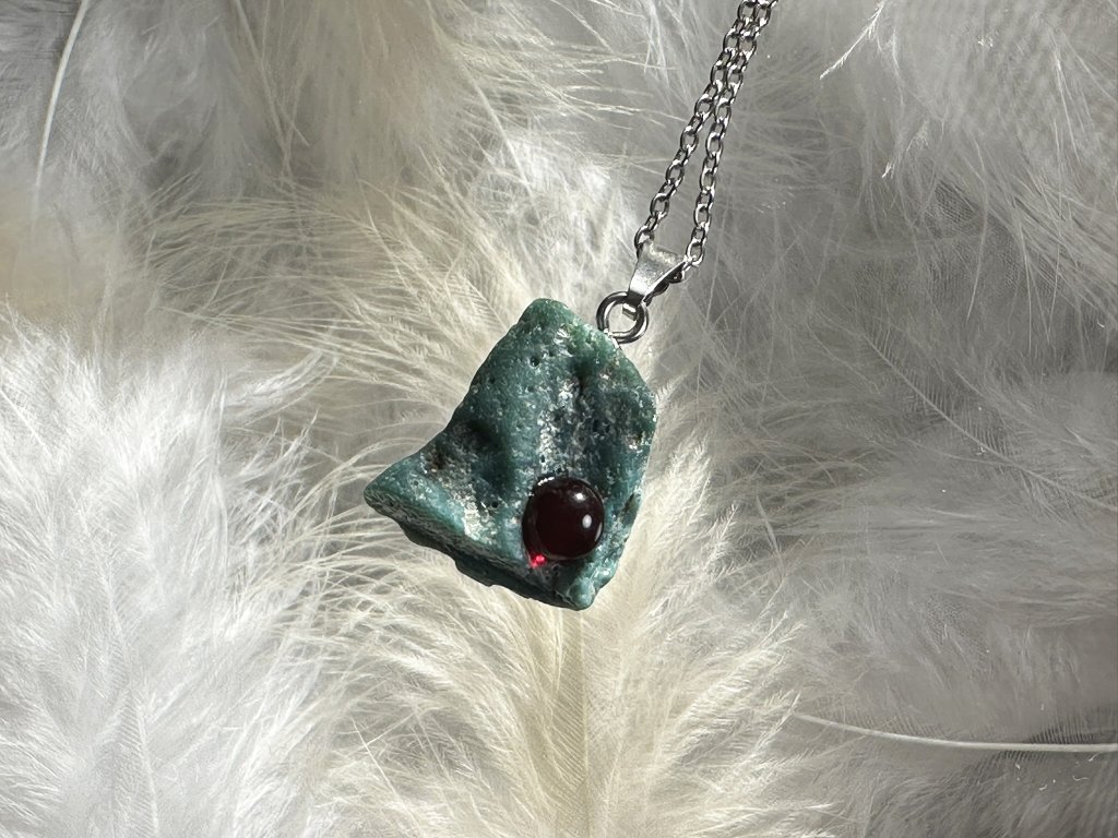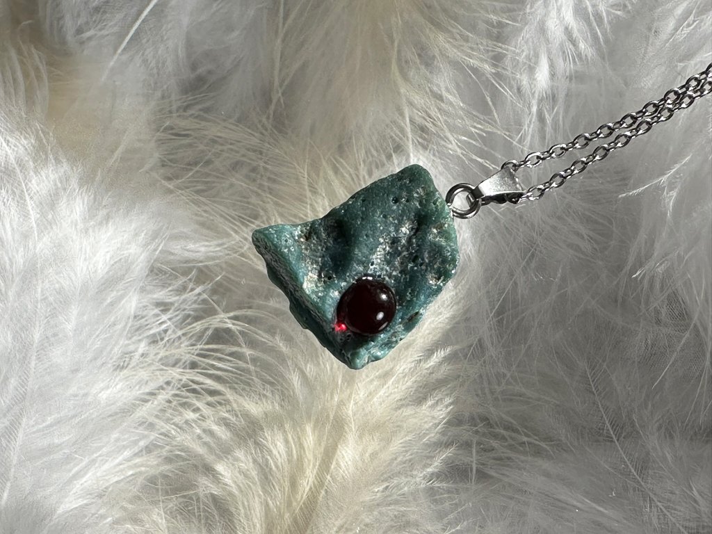 Zavěšeno na řetízku z kvalitní, antialergenní nerez oceli o délce 55 cm.