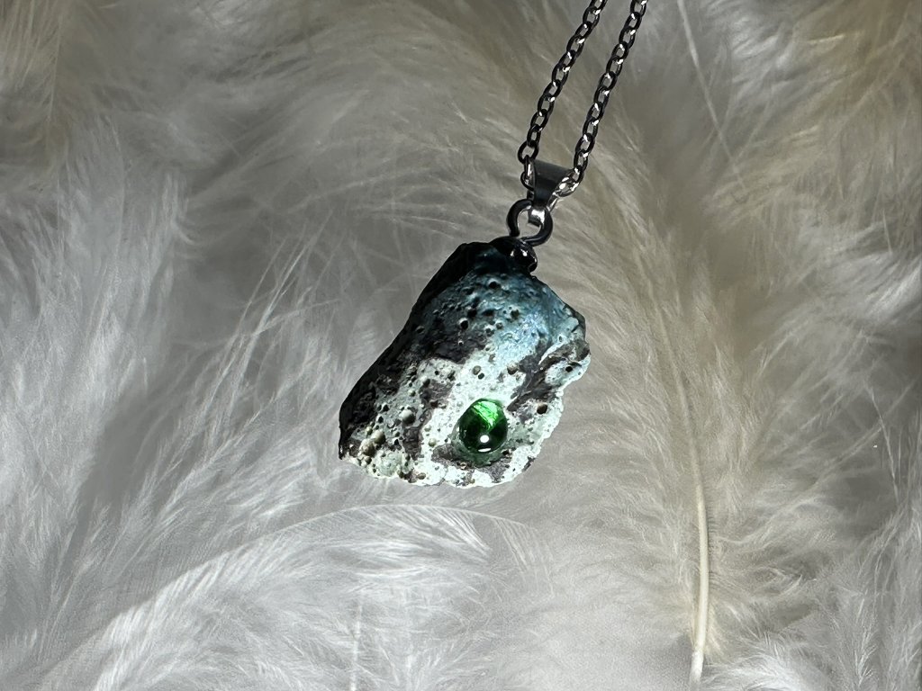Tyto přívěsky jsou unikátními nálezy, které hledám v řece Sázavě. Vše brousím a zpracovávám do jedinečných šperků, které jsou jedním jediným originálem. Dozdobuji kousky skla, které v sobě obsahuje stříbro a tím háže jemné a přesto nepřehlédnutelné odlesky.