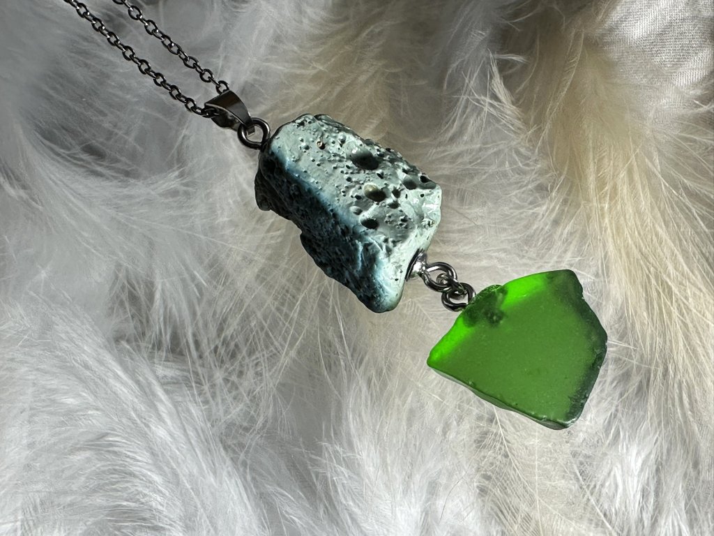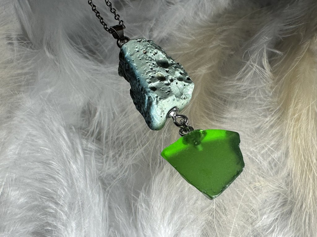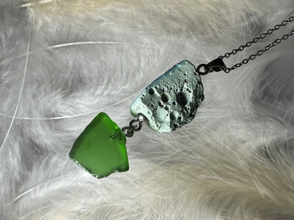 Tyto přívěsky jsou unikátními nálezy, které hledám v řece Sázavě. Vše brousím a zpracovávám do jedinečných šperků, které jsou jedním jediným originálem. Dozdobuji kousky skla.