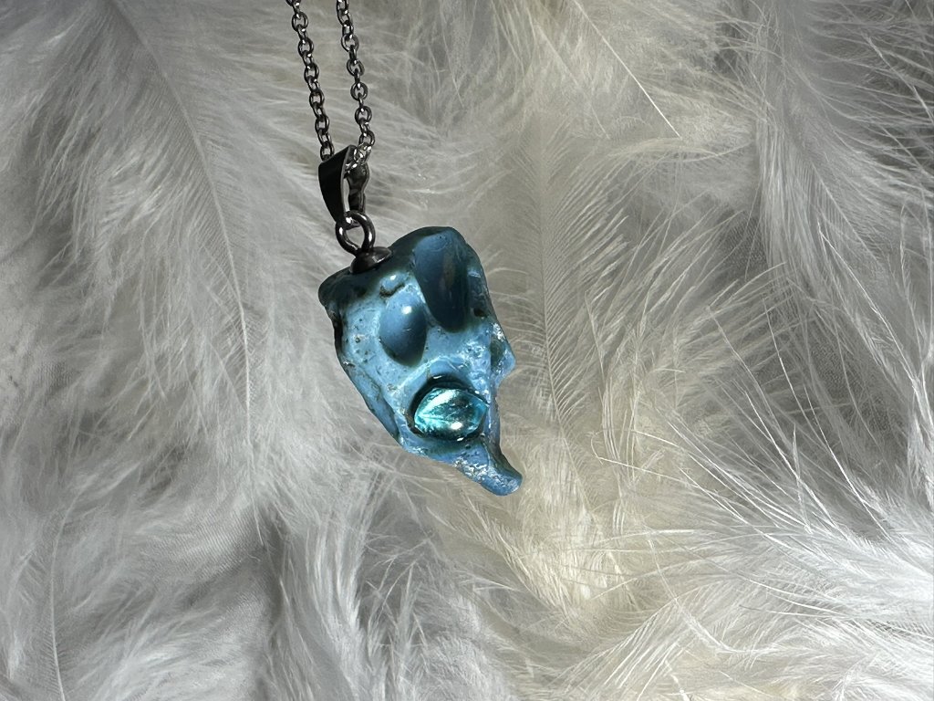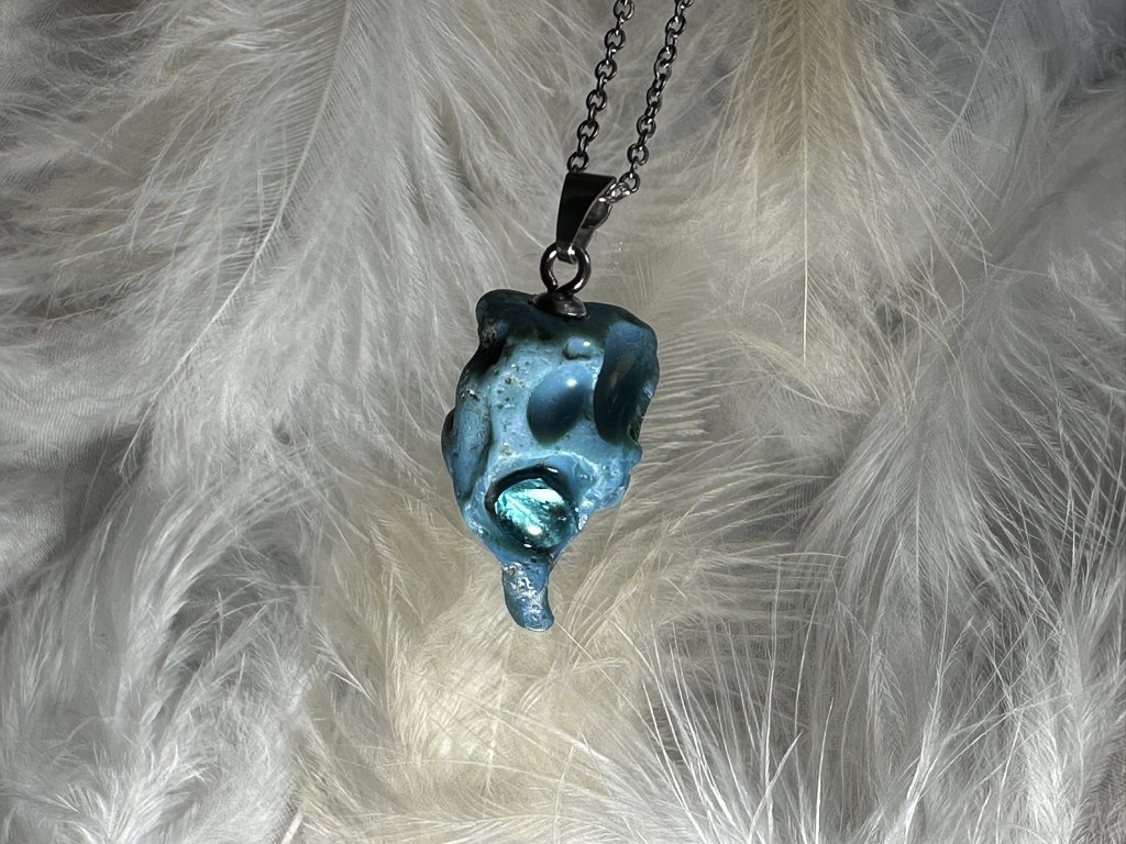 Tyto přívěsky jsou unikátními nálezy, které hledám v řece Sázavě. Vše brousím a zpracovávám do jedinečných šperků, které jsou jedním jediným originálem. Dozdobuji kousky skla, které v sobě obsahuje stříbro a tím háže jemné a přesto nepřehlédnutelné odlesky.