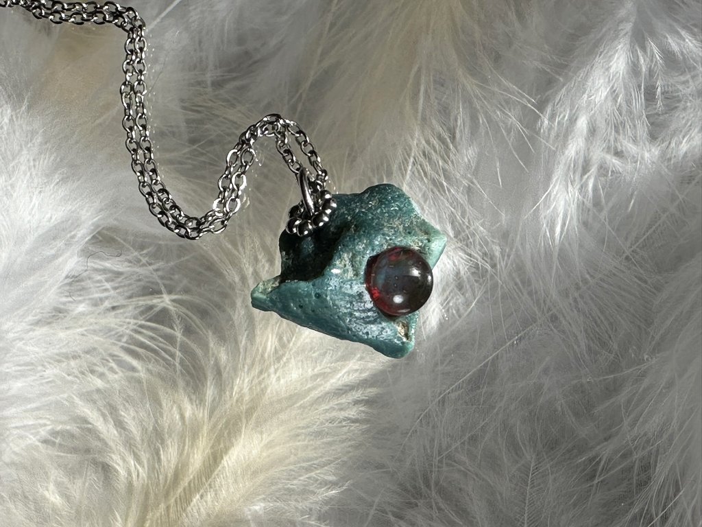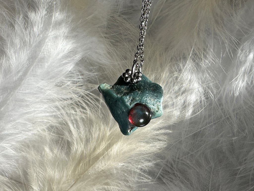 Tyto přívěsky jsou unikátními nálezy, které hledám v řece Sázavě. Vše brousím a zpracovávám do jedinečných šperků, které jsou jedním jediným originálem. Dozdobuji kousky skla.