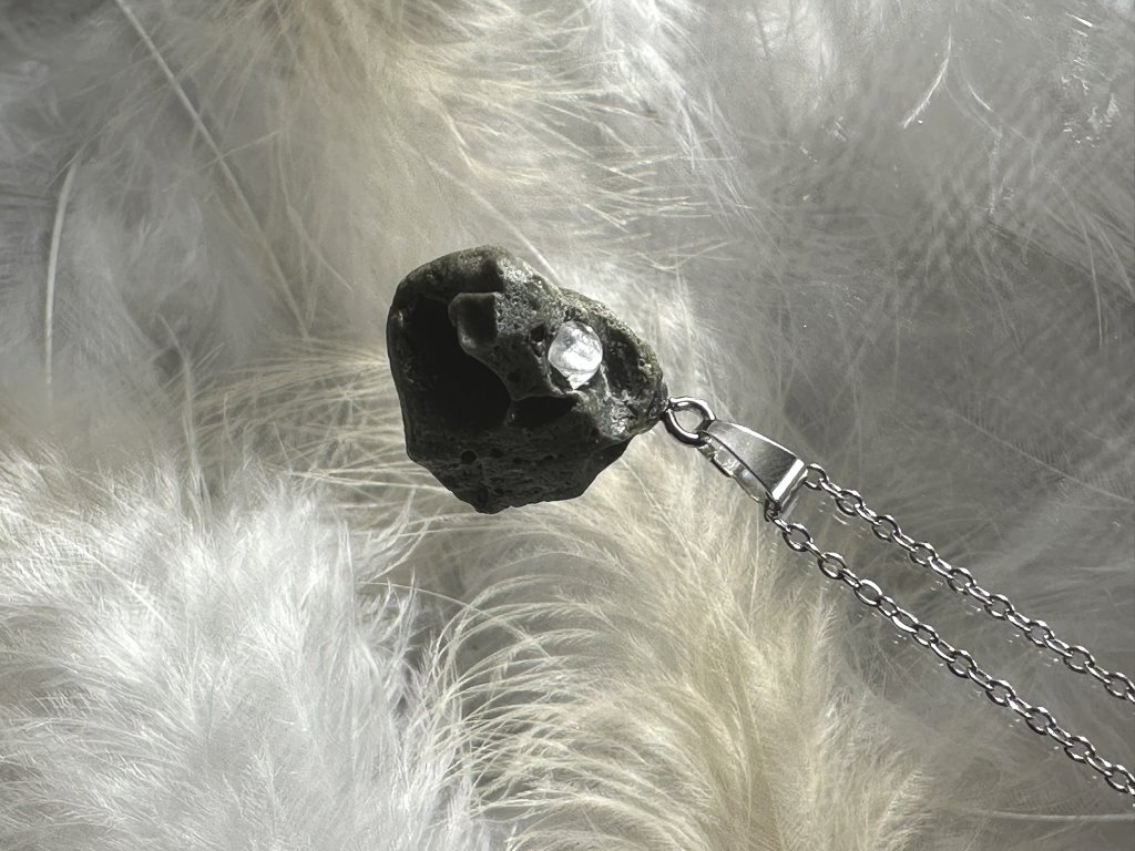 Tyto přívěsky jsou unikátními nálezy, které hledám v řece Sázavě. Vše brousím a zpracovávám do jedinečných šperků, které jsou jedním jediným originálem. Dozdobuji kousky skla, které v sobě obsahuje stříbro a tím háže jemné a přesto nepřehlédnutelné odlesky.