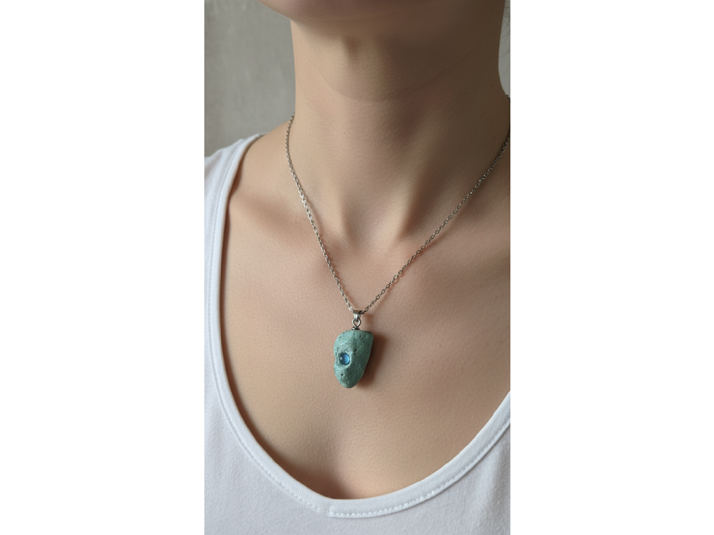 Fotografie na modelce je ilustrativní, aby jste viděli, jak tento typ přívěsku vypadá při nošení.