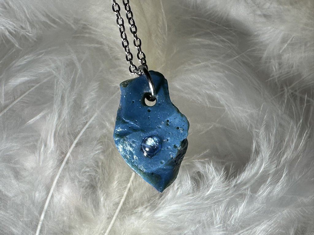 Tyto přívěsky jsou unikátními nálezy, které hledám v řece Sázavě. Vše brousím a zpracovávám do jedinečných šperků, které jsou jedním jediným originálem. Dozdobuji kousky skla, které v sobě obsahuje stříbro a tím háže jemné a přesto nepřehlédnutelné odlesky.