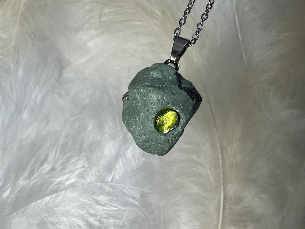 Tyto přívěsky jsou unikátními nálezy, které hledám v řece Sázavě. Vše brousím a zpracovávám do jedinečných šperků, které jsou jedním jediným originálem. Dozdobuji kousky skla, které v sobě obsahuje stříbro a tím háže jemné a přesto nepřehlédnutelné odlesky.