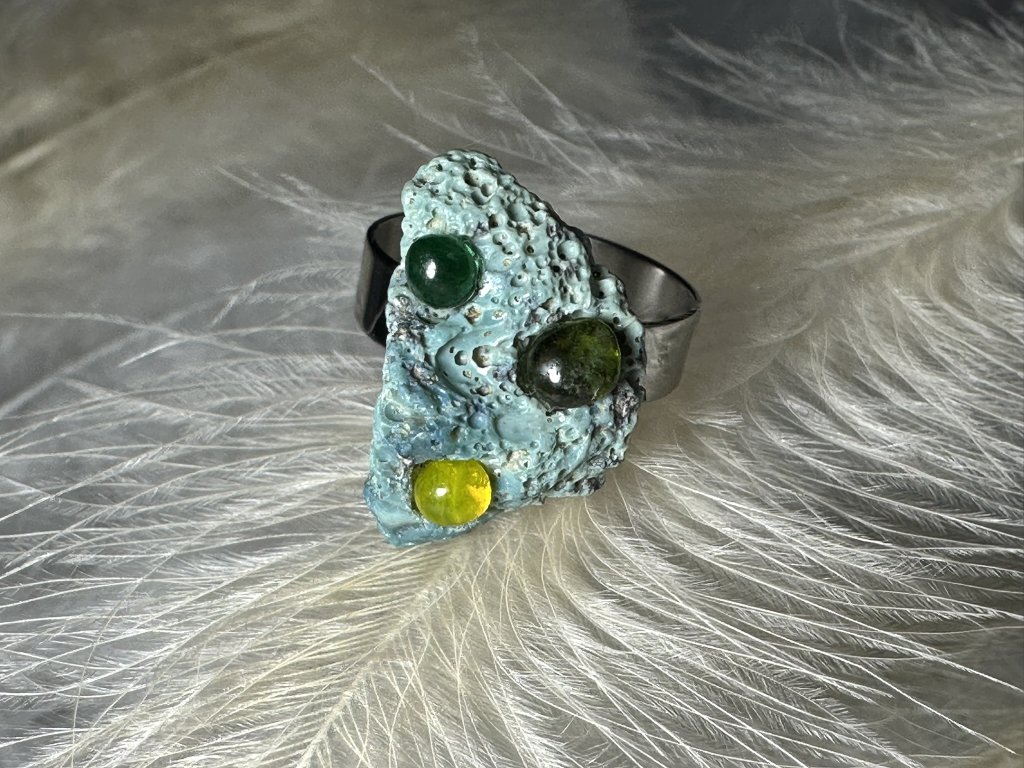 Tyto prsteny jsou unikátními nálezy, které hledám v řece Sázavě. Vše brousím a zpracovávám do jedinečných šperků, které jsou jedním jediným originálem. Dozdobuji barevnými kapičkami skla.