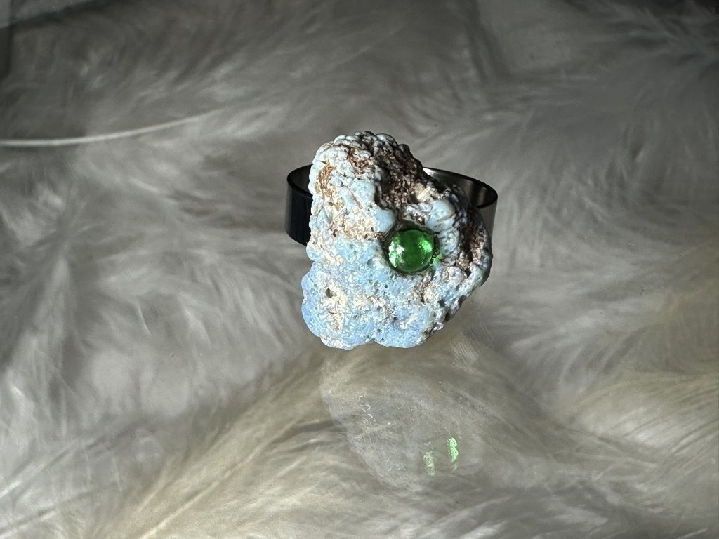 Tyto prsteny jsou unikátními nálezy, které hledám v řece Sázavě. Vše brousím a zpracovávám do jedinečných šperků, které jsou jedním jediným originálem. Dozdobuji kousky skla, které v sobě obsahuje stříbro a tím háže jemné a přesto nepřehlédnutelné odlesky.