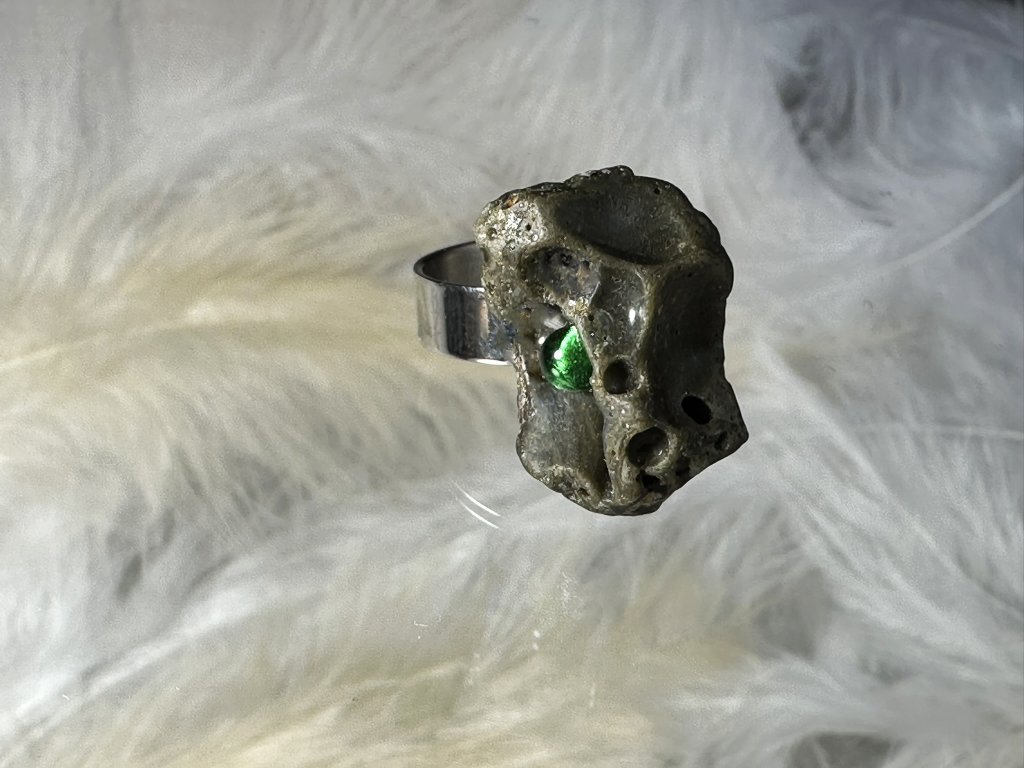 Tyto prsteny jsou unikátními nálezy, které hledám v řece Sázavě. Vše brousím a zpracovávám do jedinečných šperků, které jsou jedním jediným originálem. Dozdobuji kousky skla, které v sobě obsahuje stříbro a tím háže jemné a přesto nepřehlédnutelné odlesky.