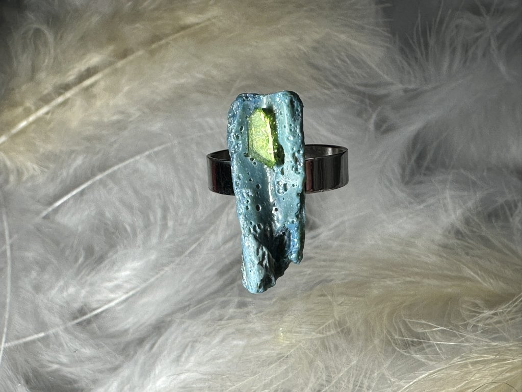Tyto prsteny jsou unikátními nálezy, které hledám v řece Sázavě. Vše brousím a zpracovávám do jedinečných šperků, které jsou jedním jediným originálem. Dozdobuji kouskem žluto-zeleného sklíčka se zrcátkem.