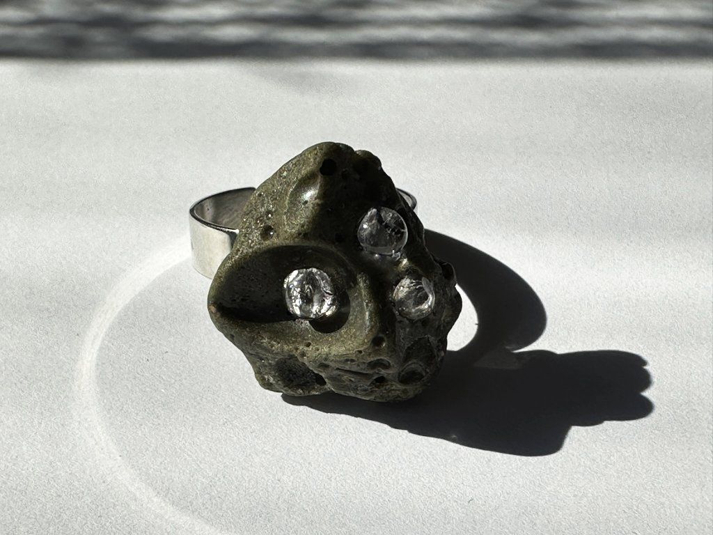 Tyto prsteny jsou unikátními nálezy, které hledám v řece Sázavě. Vše brousím a zpracovávám do jedinečných šperků, které jsou jedním jediným originálem. Dozdobuji kousky skla, které v sobě obsahuje stříbro a tím háže jemné a přesto nepřehlédnutelné odlesky.