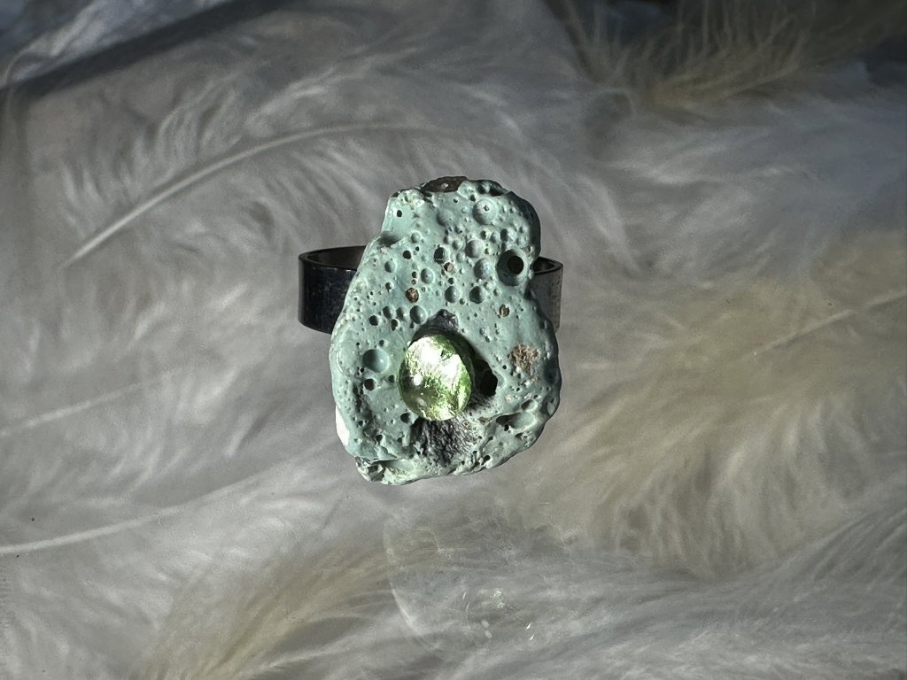 Tyto prsteny jsou unikátními nálezy, které hledám v řece Sázavě. Vše brousím a zpracovávám do jedinečných šperků, které jsou jedním jediným originálem. Dozdobuji kousky skla, které v sobě obsahuje stříbro a tím háže jemné a přesto nepřehlédnutelné odlesky.