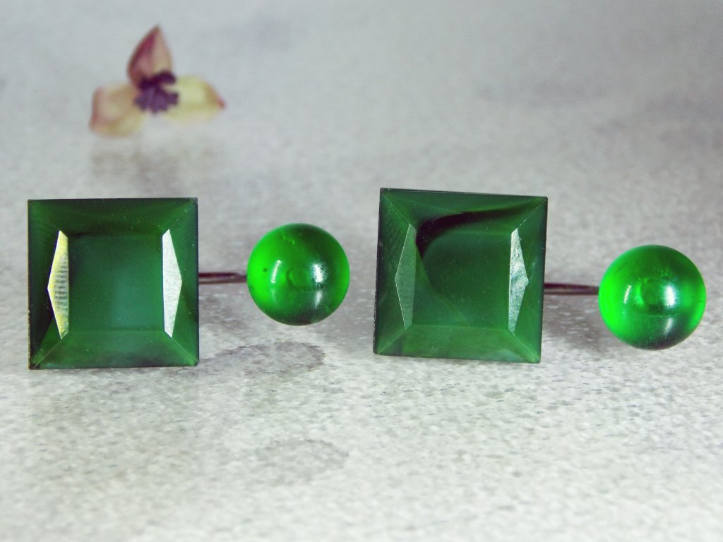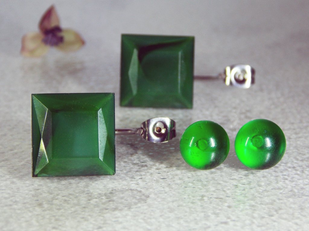 Dvojité, skleněné náušnice v barvě zelené. Tento druh náušnic si zamilujete, jelikož můžete nosit samostatné puzetky či k nim připojit záušnici. Náušnice je poté dvojitá a na uchu vypadá velmi zjímavě. Elegantní šperk krásně vyniká na světle, kde se rozzáří. Zapínání je puzetové z antialergenní nerez ocele.