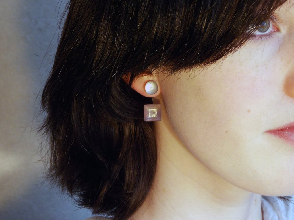 Velikost kulaté puzetky je 9 mm a velikost broušeného čtverce je 1, 5 cm. Celková délka dvojité náušnice je 3 cm.