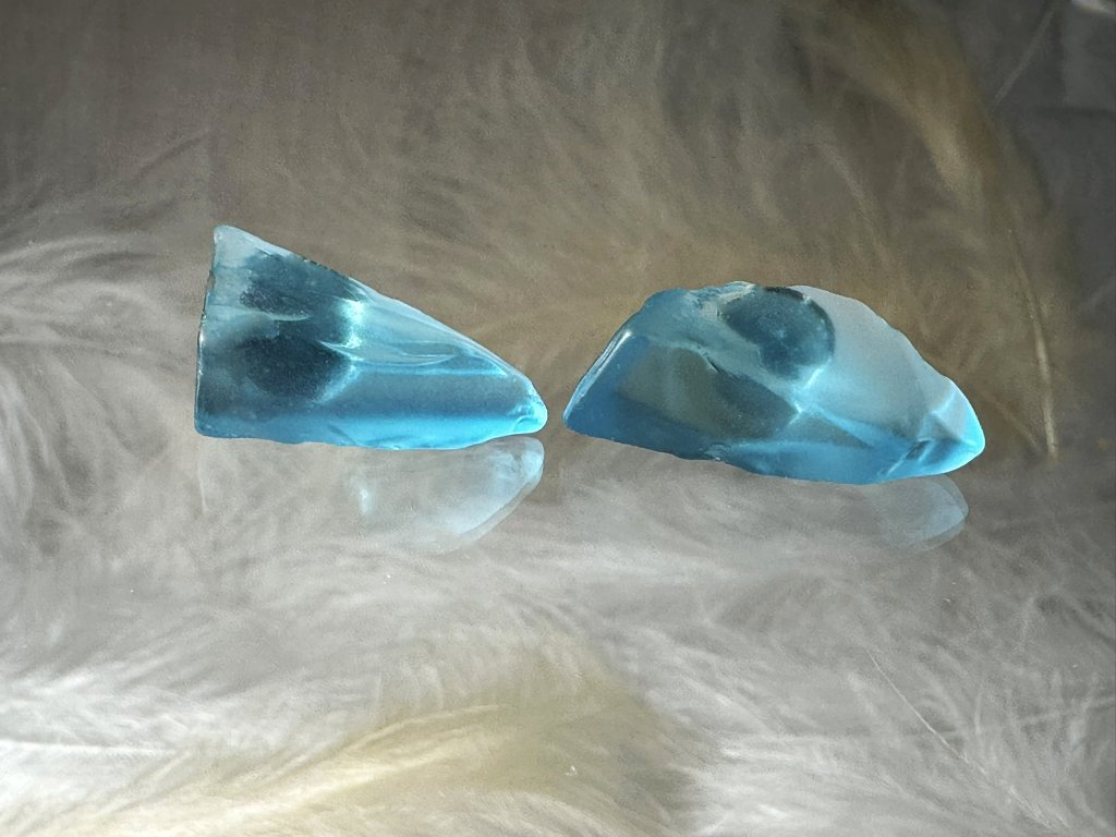 Každý střípek mi projde několikrát rukama, dobrušuji, kombinuji a pískuji jej. Tím vzniká nádherný, jemný, matný efekt, ale je zároveň zachována průzračnost a světlo krásně sklem prostupuje v různých úhlech a tak se náušnice budou měnit po celý den.
