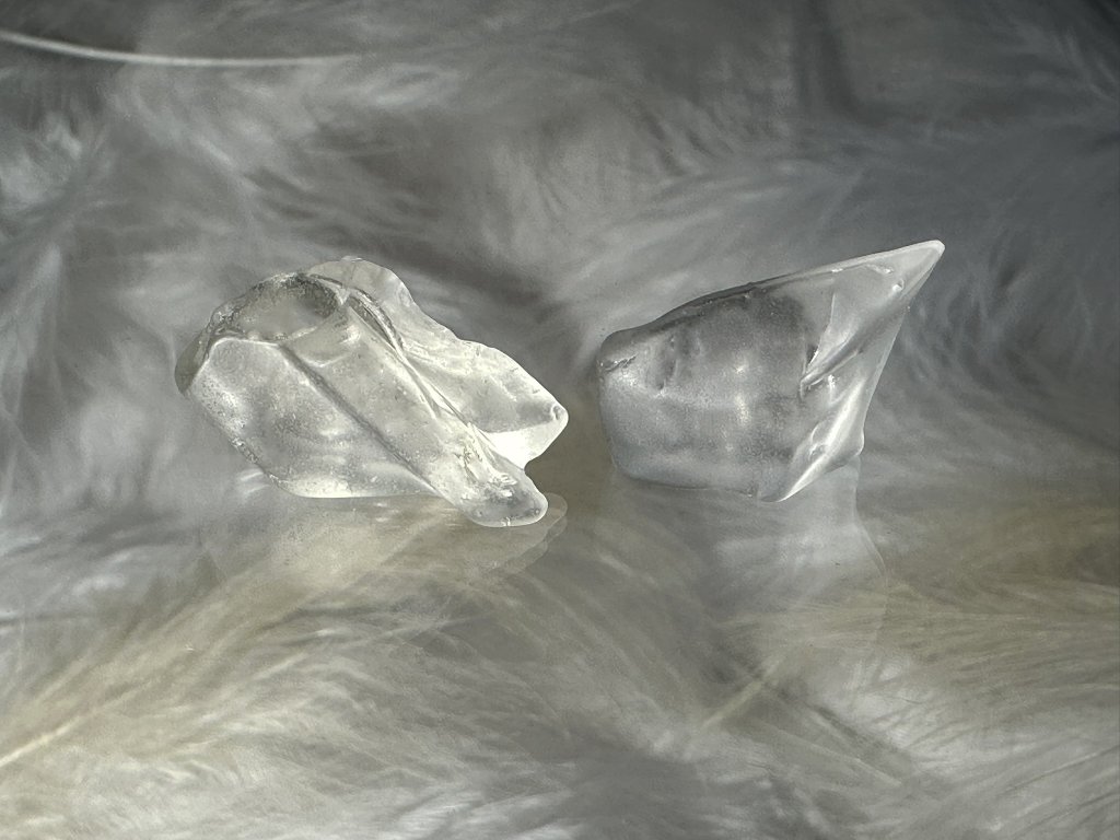 Každý střípek mi projde několikrát rukama, dobrušuji, kombinuji a pískuji jej. Tím vzniká nádherný, jemný, matný efekt, ale je zároveň zachována průzračnost a světlo krásně sklem prostupuje v různých úhlech a tak se náušnice budou měnit po celý den.