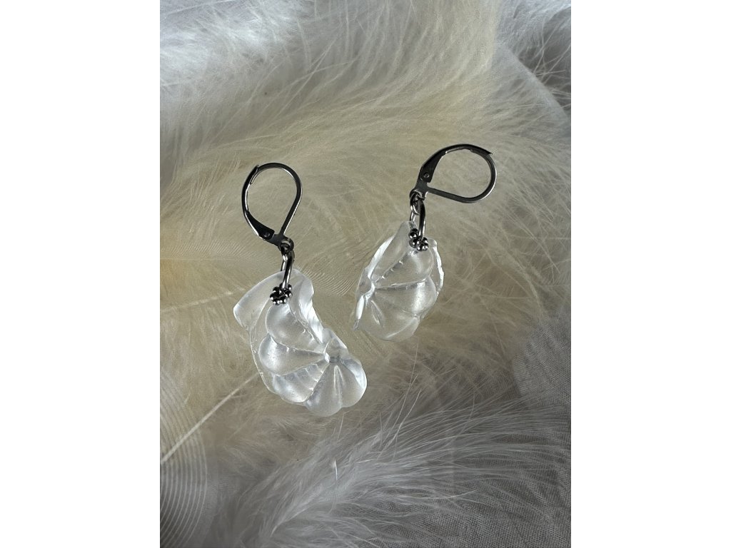Každý střípek mi projde několikrát rukama, dobrušuji, kombinuji a pískuji jej. Tím vzniká nádherný, jemný, matný efekt, ale je zároveň zachována průzračnost a světlo krásně sklem prostupuje v různých úhlech a tak se náušnice budou měnit po celý den.