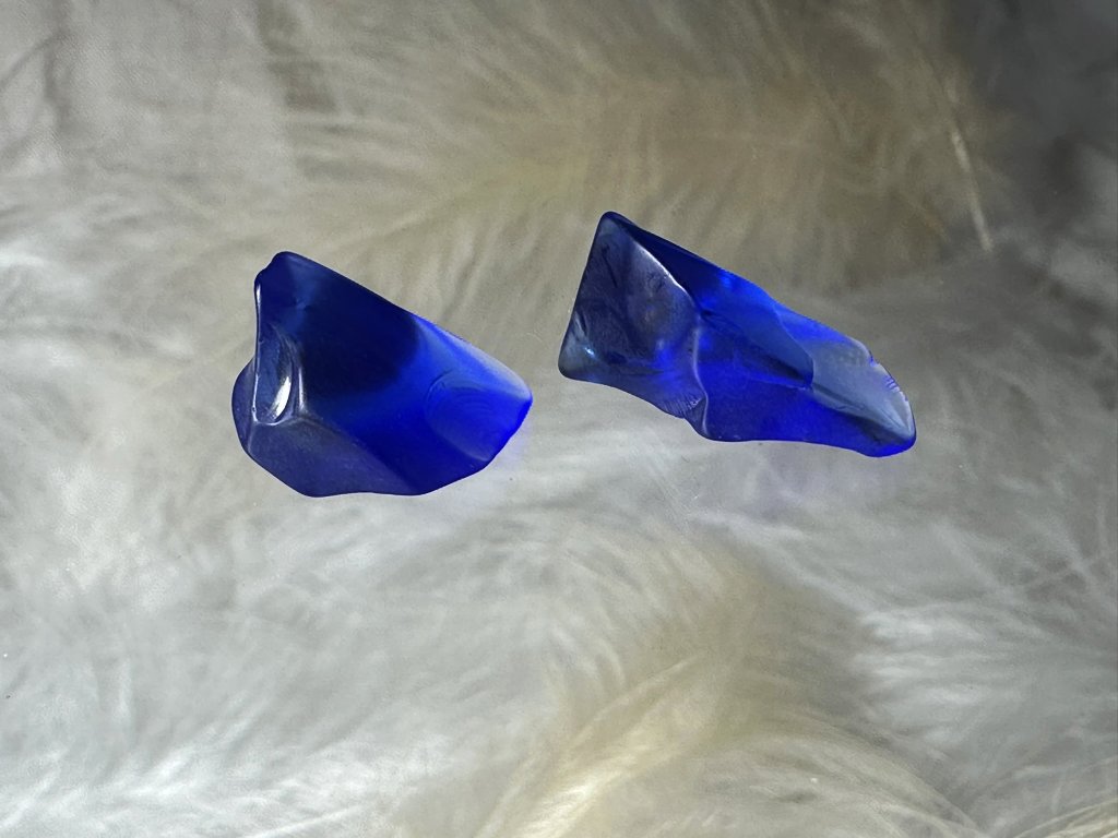 Každý střípek mi projde několikrát rukama, dobrušuji, kombinuji a pískuji jej. Tím vzniká nádherný, jemný, matný efekt, ale je zároveň zachována průzračnost a světlo krásně sklem prostupuje v různých úhlech a tak se náušnice budou měnit po celý den.