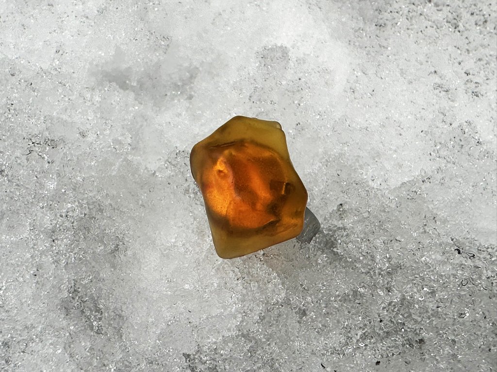 Každý střípek mi projde několikrát rukama, dobrušuji, kombinuji a pískuji jej. Tím vzniká nádherný, jemný, matný efekt, ale je zároveň zachována průzračnost a světlo krásně sklem prostupuje v různých úhlech a tak se prsten bude měnit po celý den.